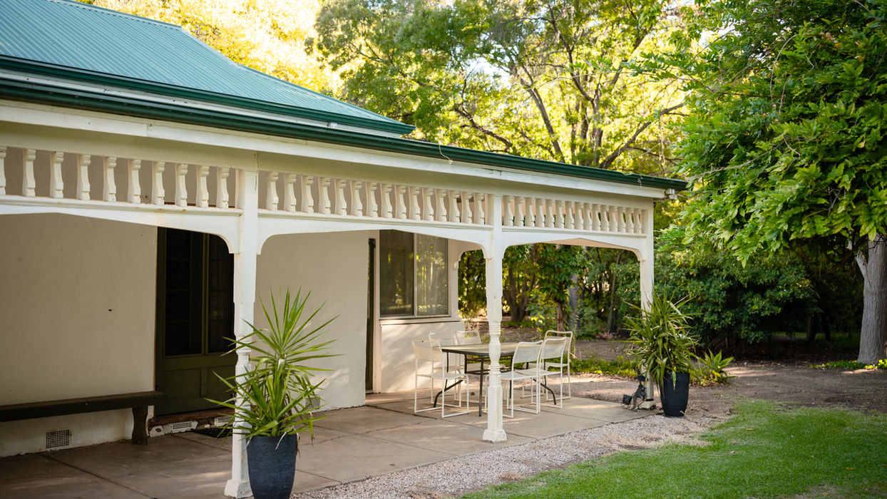 The homestead is an single-story building constructed from rendered brick. Its long, rectangular design is complemented by a spacious wraparound veranda, supported by turned wooden posts and featuring an intricate frieze of turned timber balustrades. Connected by a breezeway, a second rendered brick structure houses the kitchen and former servants’ quarters. Both buildings have undergone recent upgrades with minimal alterations.